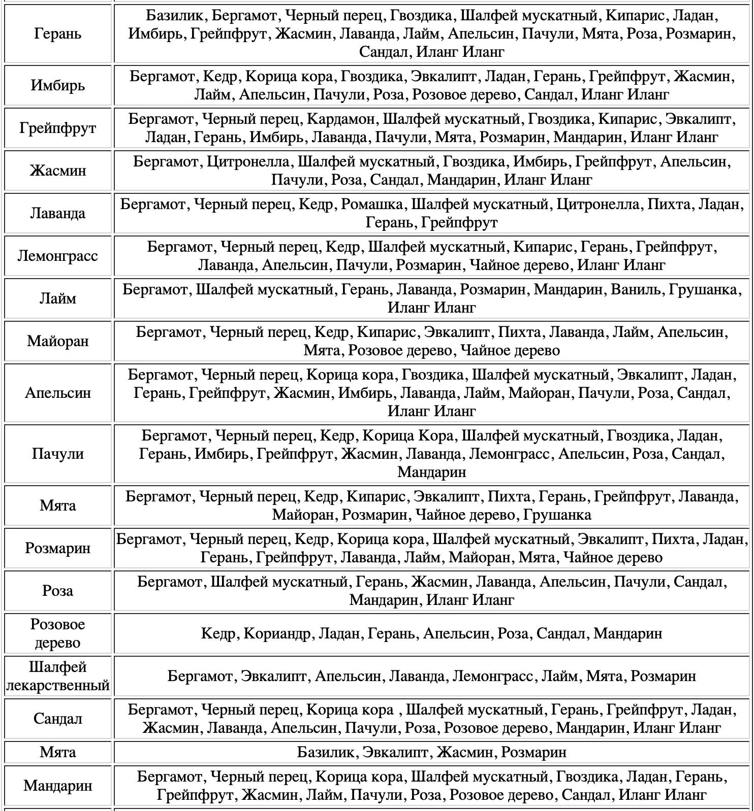Сочетаемость эфирных масел в ароматерапии и косметологии